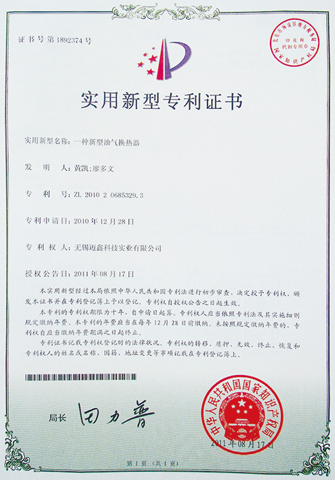 實(shí)用新型專利證書